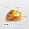 - Contiene manteca de cacao, karité, extracto de cúrcuma, camelia, manzanilla, salvia, vitamina E, jojoba, ester de oliva, ácido oleico y cera de arroz.