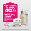 Aplica dos veces al día (mañana y noche) tomando una cantidad suficiente con la yema de los dedos para cubrir las zonas deseadas: rostro, cuello y escote.